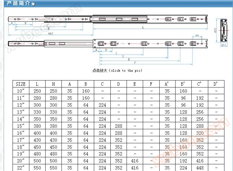 Product Name: 45 Wide Three Section Buffer Steel Ball Slide Product Code: YP00301