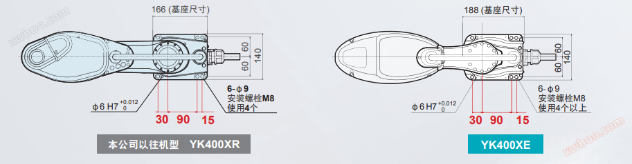 The installation location is fully compatible with the previous model YK400XR, making it easy to perform replacement operations.
