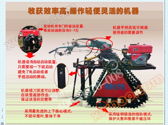 Artificially producedgingerSix people produce one acre per day, with an average salary of 150 yuan per person. It costs 900 yuan to produce one acre of scallions per day. The scallion and ginger harvester produces fifteen acres of scallions per day, with a cost of only 40 yuan per acre, saving 860 yuan.